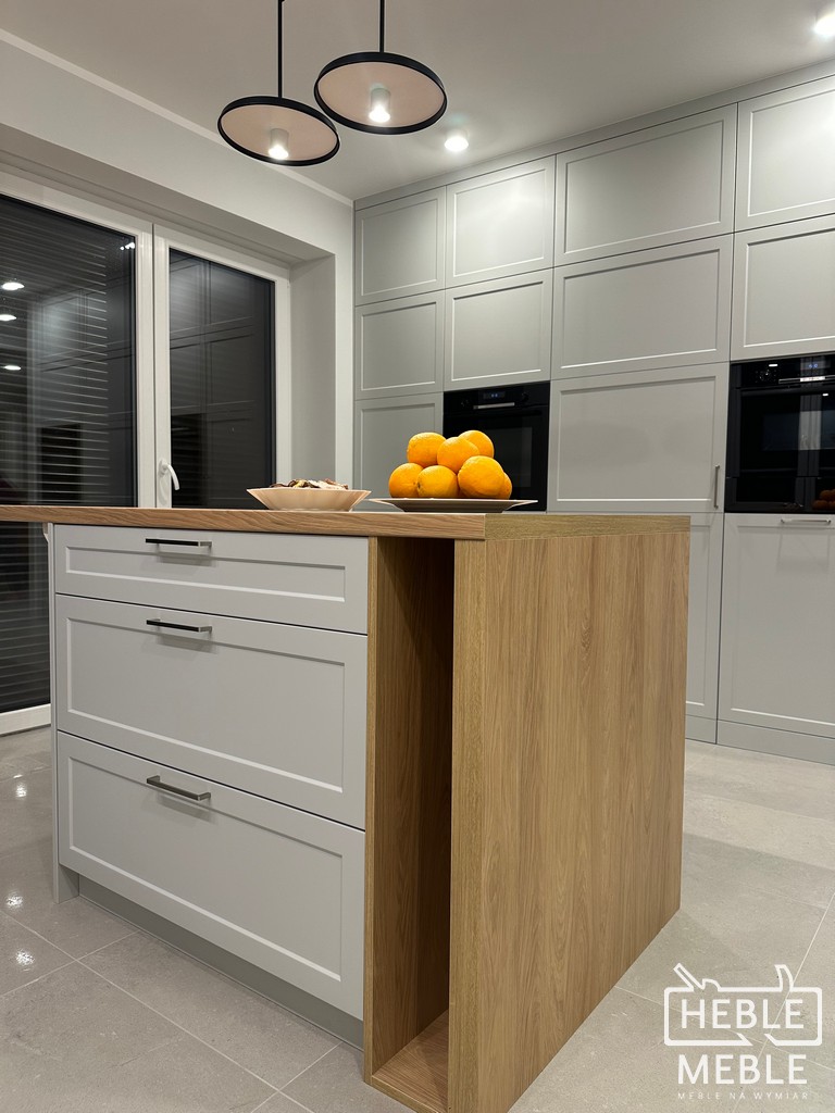 Warto zadbać o dużą ilość blatu roboczego oraz przemyślane przechowywanie. Głębokie szuflady, systemy organizacji wewnętrznej czy zabudowa do sufitu pomagają utrzymać porządek. Im mniej przedmiotów pozostaje na widoku, tym dłużej kuchnia wygląda estetycznie i świeżo.